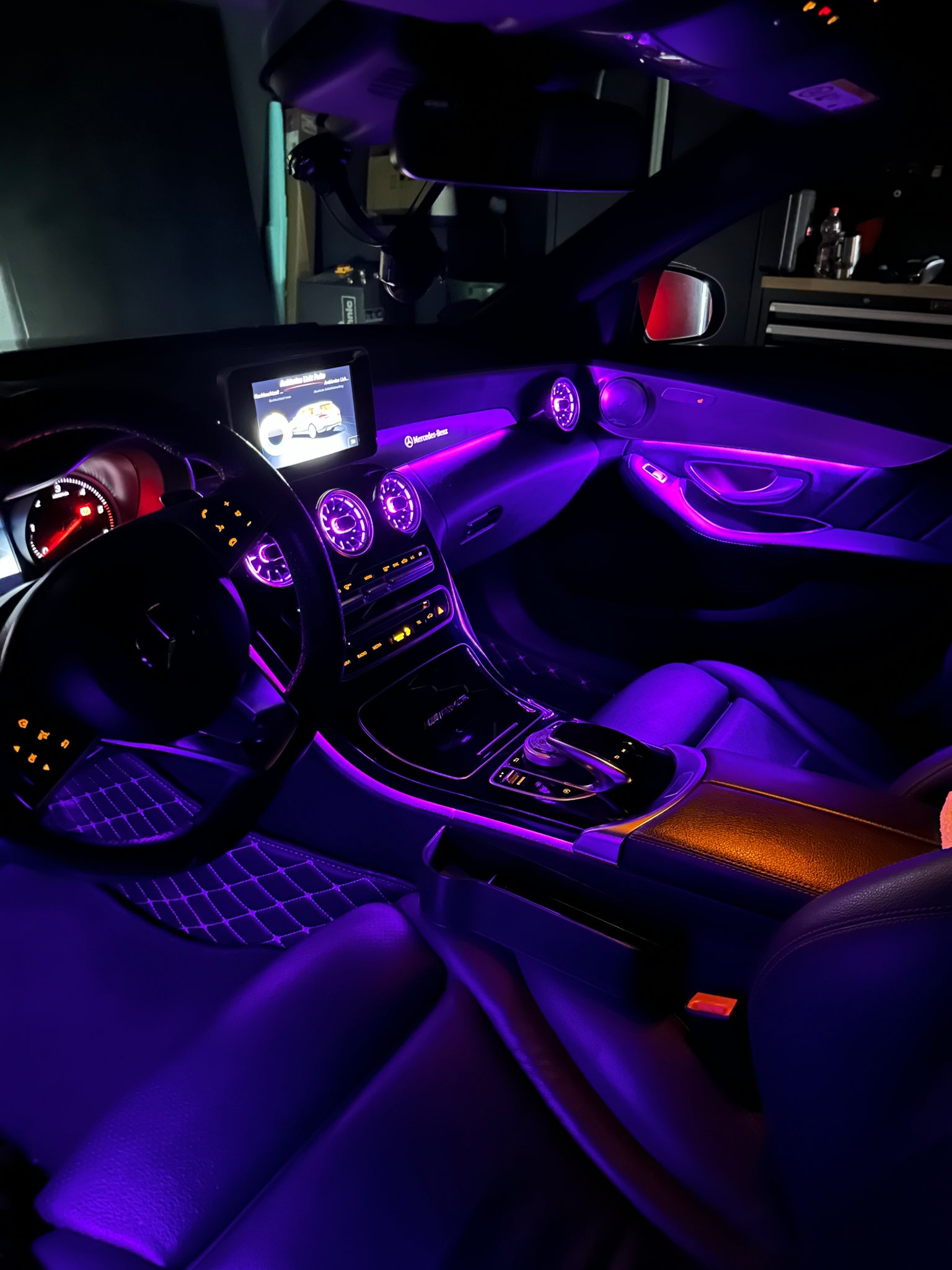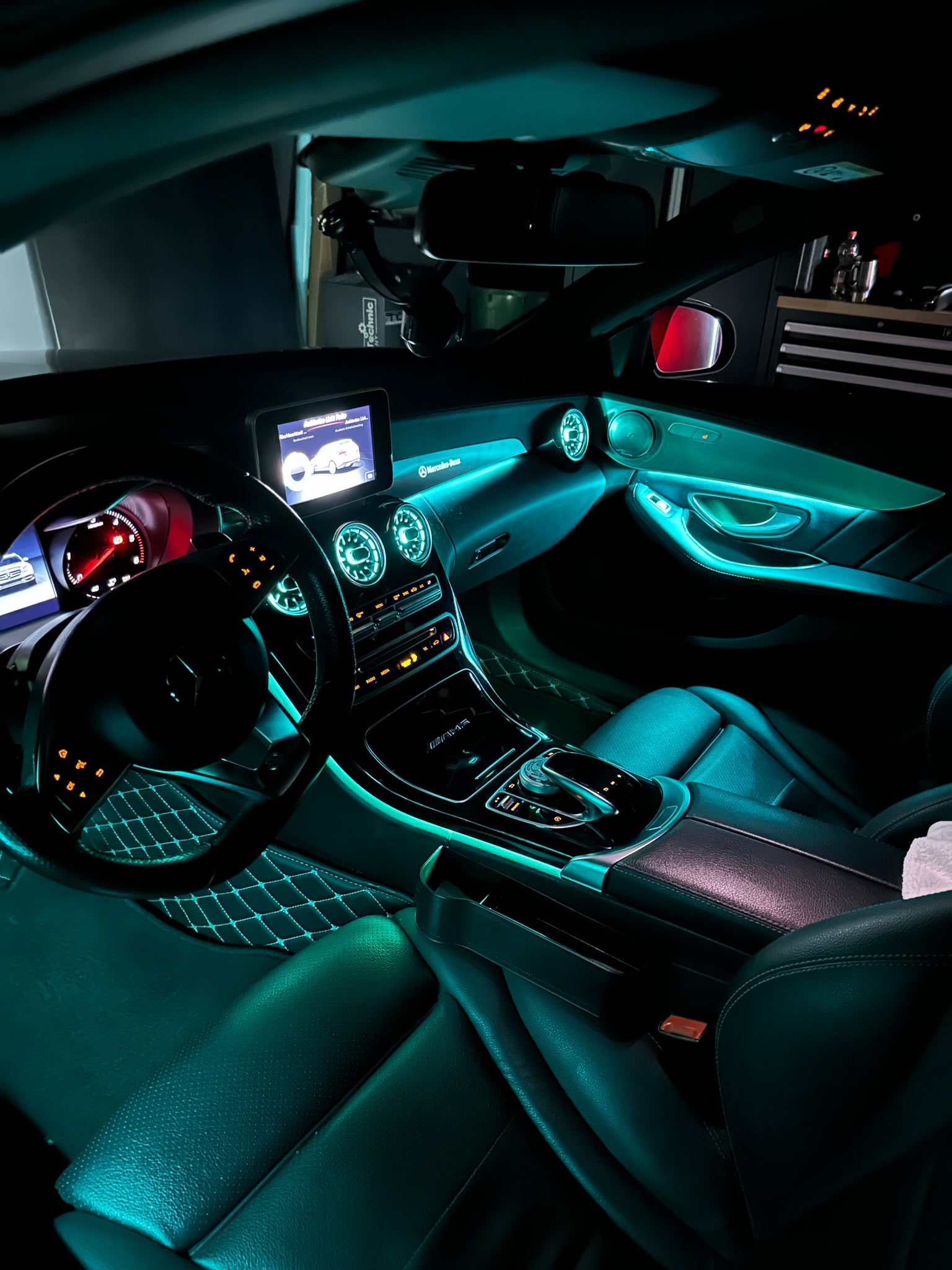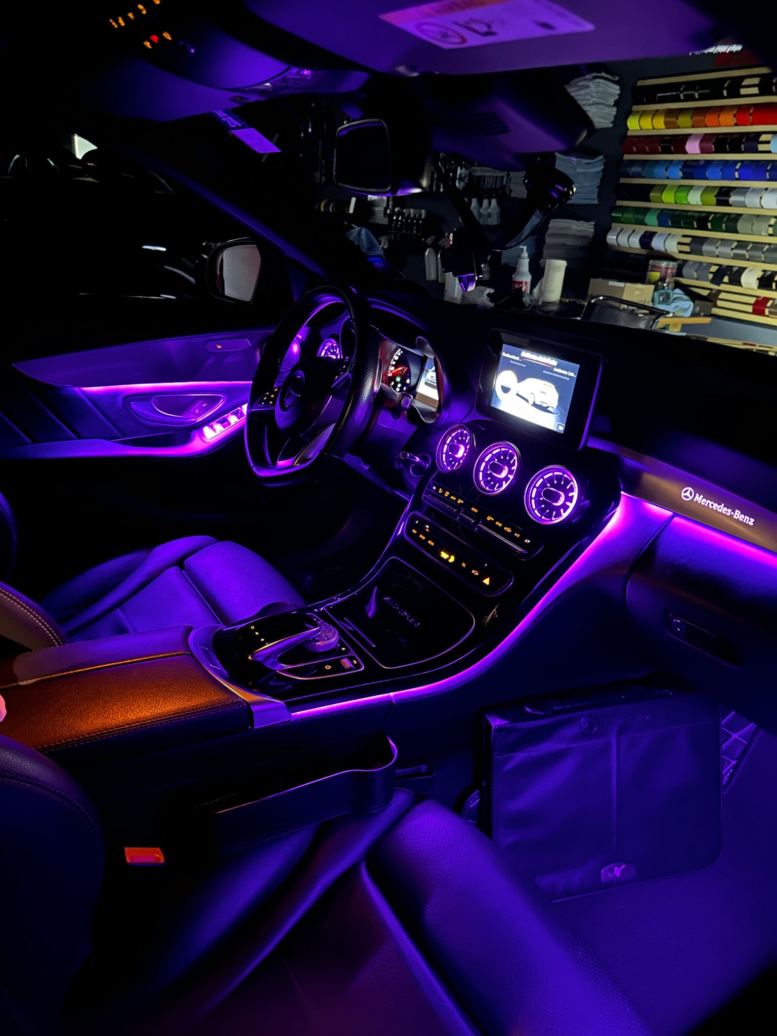 Wir von DJ-Tuning bieten eine Erweiterung der Ambientebeleuchtung von 3 auf 64 Farben für die C-Klasse W205 & GLC-X253
